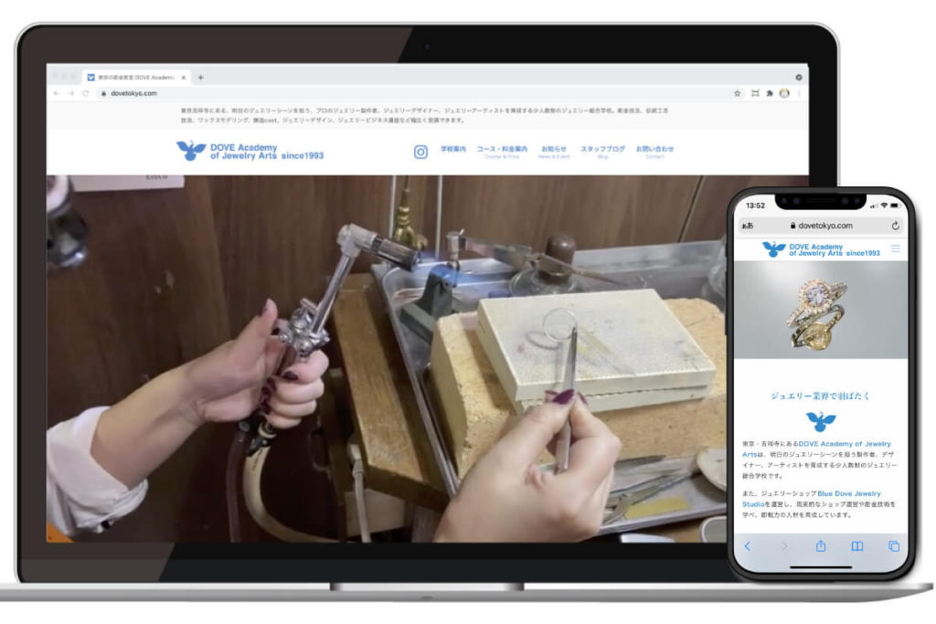 東京都武蔵野市にある株式会社NAO様のジュエリースクール事業の方針転換に伴ない、新しいデザインコンセプトでWebサイトをリニューアル(新規制作)させていただきました。プランニングからデザイン、コーディングをはじめ、コンテンツ編集、SNS連携、デジタル広告なども担当させていただきました。